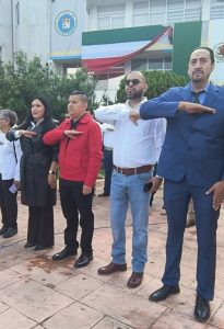Autoridades del ayuntamiento, encabezados por el presidente Mario Córdova Longoria y la síndica Gabriela Alvarado, elementos de la Guardia Nacional y autoridades del plantel participaron en la ceremonia que distinguió el profundo respeto de las niñas y los niños por la bandera nacional.