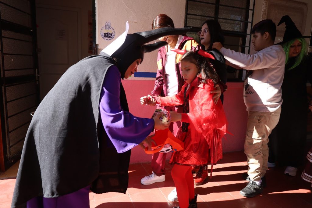 Con terroríficos disfraces y cánticos típicos de las fechas fúnebres, niñas, niños y jóvenes del plantel educativo, recorrieron las diferentes áreas del Sistema donde pidieron el tradicional “muerto” y reavivaron las fiestas mexicanas que se realizan en torno al 1 y 2 de noviembre.