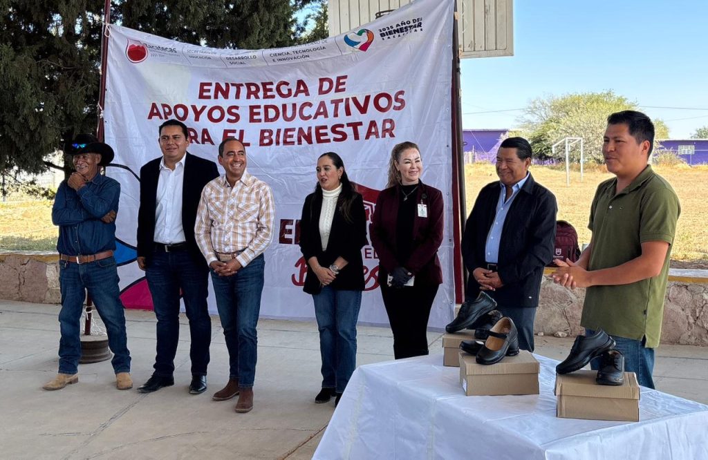 Con la finalidad de que las y los alumnos de las comunidades de Guadalupe cuenten con calzado digno para asistir a sus escuelas, continúa la entrega de Apoyos Educativos para el Bienestar, programa impulsado por el Gobernador David Monreal.