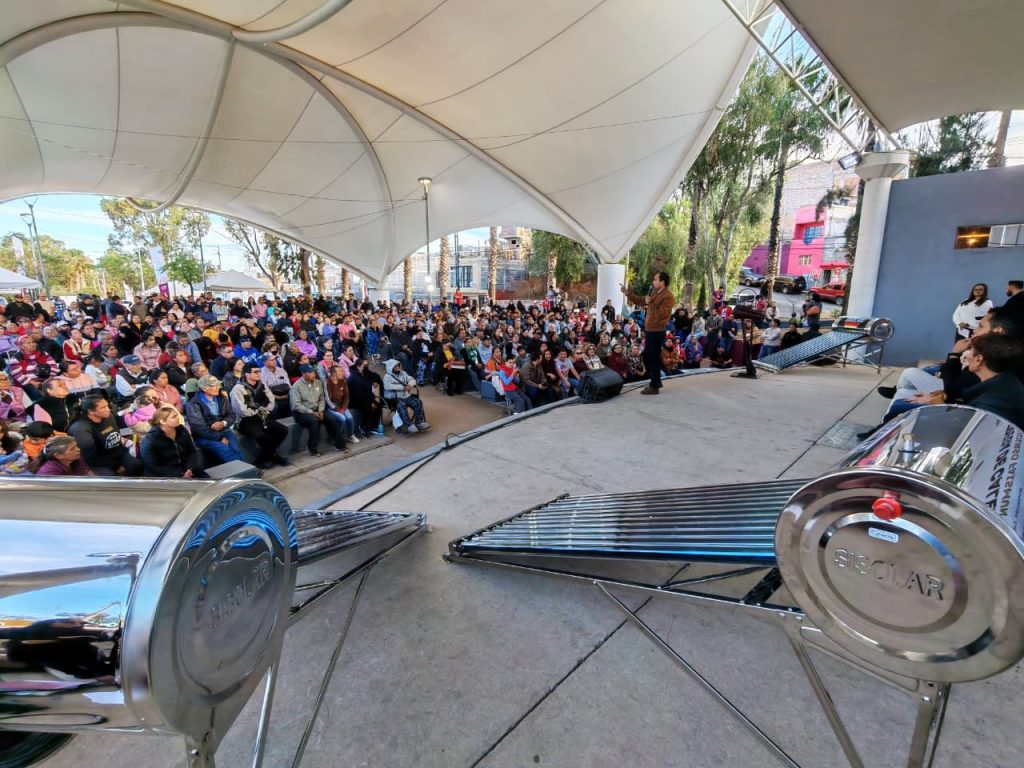 Cientos de familias guadalupenses podrán contar ya con el servicio de agua caliente en sus casas, gracias a que recibieron de manos del alcalde Pepe Saldívar y de la senadora Verónica Díaz Robles certificados de calentadores solares en una fructífera entrega en la concha acústica del Parque La Purísima.