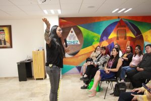 Por su parte, Kenya Cuevas compartió con las y los jóvenes su experiencia de vida, abordando los desafíos que ha enfrentado como mujer trans, así como su trayectoria en la defensa de los derechos de la población LGBTTTIQ+.